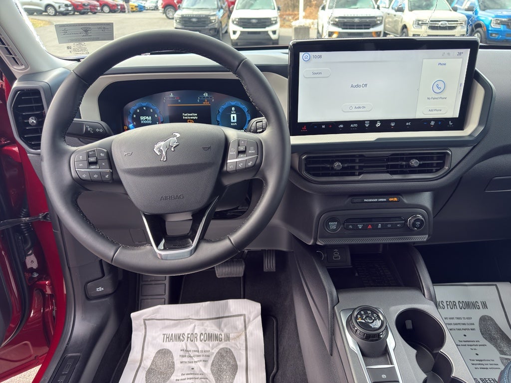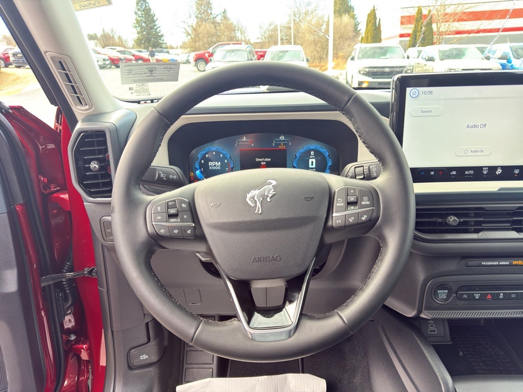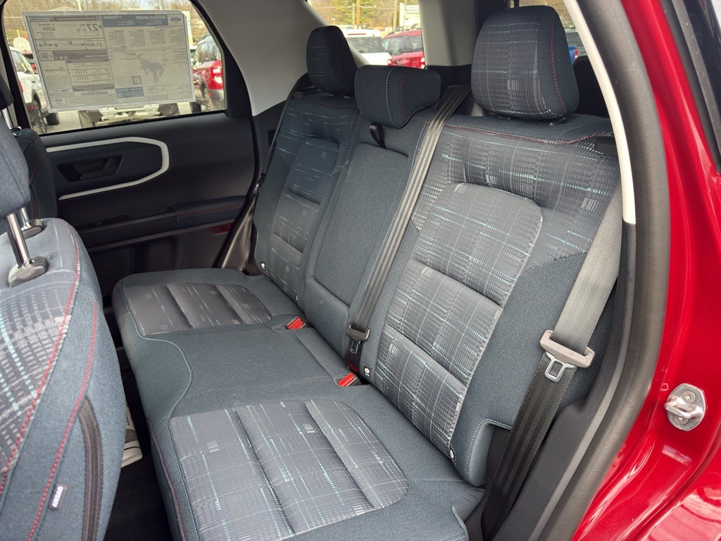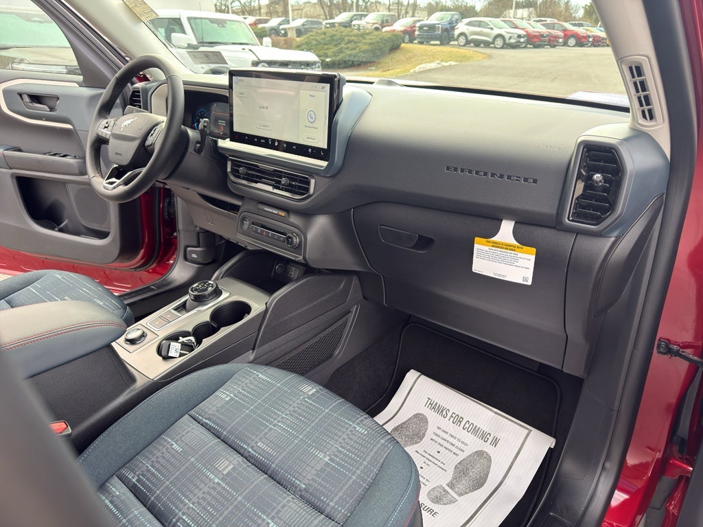 It has auto-adjust speed for safe following. Bluetooth® technology is built into this mid-size suv, keeping your hands on the steering wheel and your focus on the road. This Ford Bronco Sport offers Apple CarPlay for seamless connectivity. This vehicle comes equipped with Android Auto for seamless smartphone integration on the road. The state of the art park assist system will guide you easily into any spot. Start it from inside with remote start. This mid-size suv keeps you comfortable with Auto Climate. See what's behind you with the back up camera on this 2025 Ford Bronco Sport . Quickly unlock the Ford Bronco Sport with keyless entry. This model excites both driver and bystanders with a polished red exterior with racy lines. When you encounter slick or muddy roads, you can engage the four wheel drive on this Ford Bronco Sport and drive with confidence. Maintaining a stable interior temperature in this unit is easy with the climate control system.