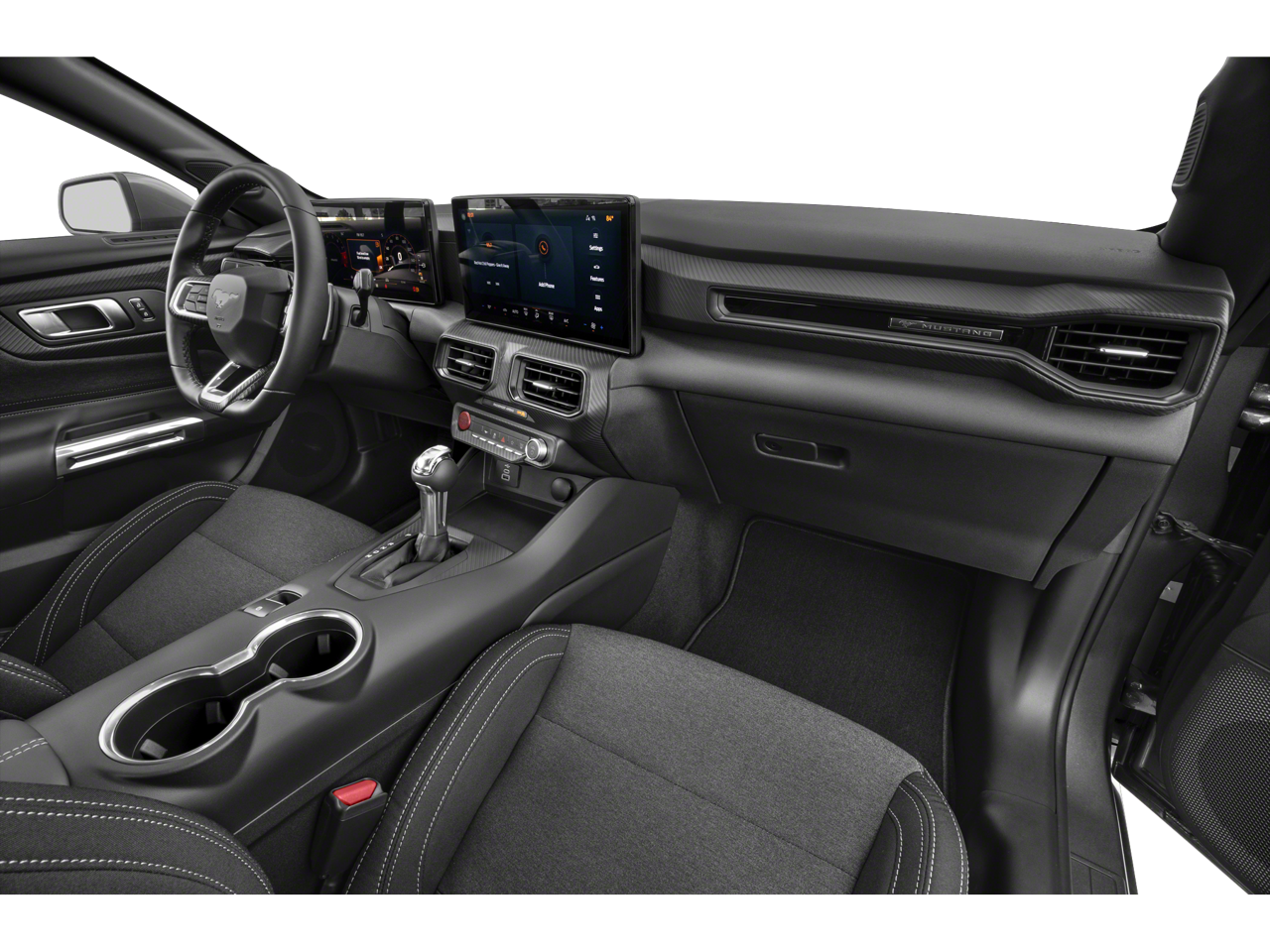 Mustang Nite Pony Package: Black Painted Wedge Decklid Spoiler; Black Mirror Caps; Black GT Pony Badges; Painted Black Roof; Headlamps with Black Bezels. Equipment Group 301A High Package: Ambient Lighting with MyColor; Cloth/vinyl Heated Bucket Seats; 5.0L Ti-VCT V8 Engine; 8" X 8.5" Ebony Black Painted Aluminum Wheels; SiriusXM with 360L and HD Radio; 6-Speed Manual Transmission; 9-Speaker Stereo System; 255/45VR18 Tires; AM/FM Stereo. 3.55 Limited Slip Rear Axle. Floor Mats. 1st Row. Black with City Silver GT Logo. **Equipment listed is based on original vehicle build and subject to change. Please confirm the accuracy of the included equipment by calling the dealer prior to purchase.**